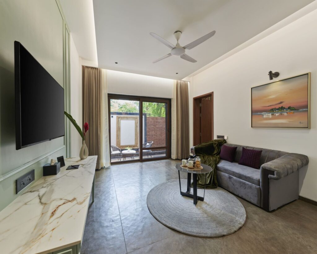 Designed to soak in natural light, the Luxe Patio Room opens into a private sunlit patio – a calm corner for morning coffee or quiet reading. Modern interiors, soft textures, and elegant amenities create an experience both warm and sophisticated.